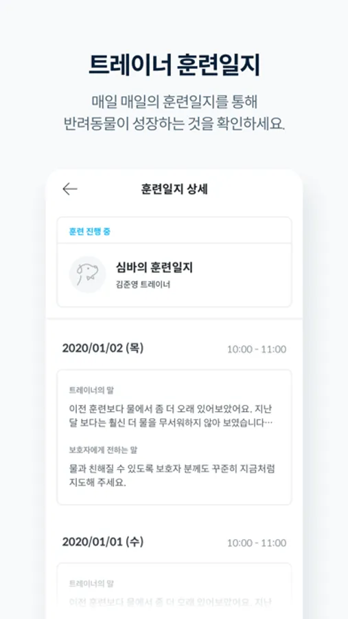훈련사를 한번 만나서 교육받는 것도 중요하지만, 교육 받고 훈련일지로 기록을 남기는 것도 펫 교육에 매우 효율적 입니다.