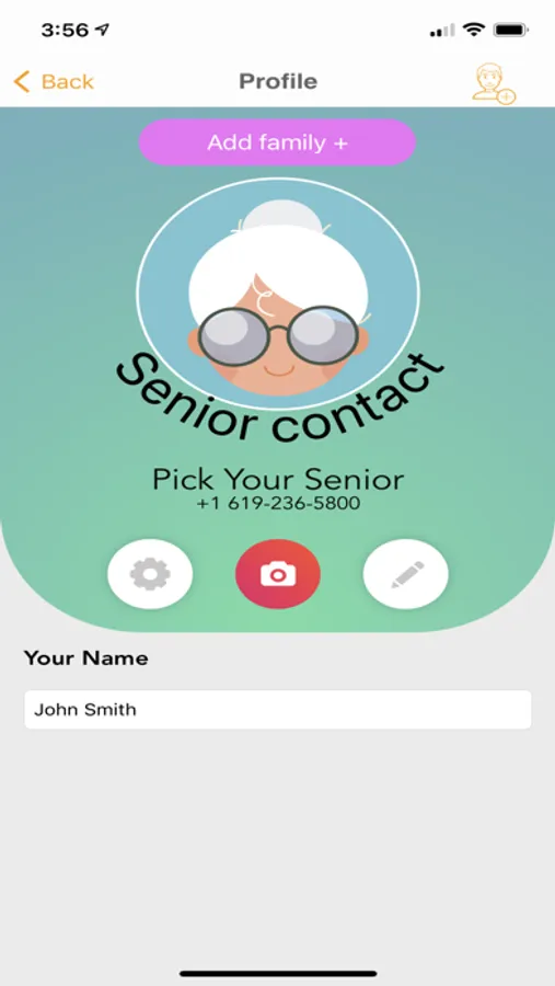 2) The Senior family member installs the app. He/She register the phone number when login in.