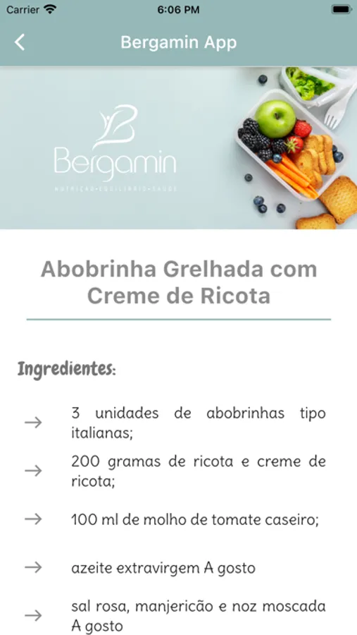 Com o Bergamin App, nossos clientes tem acesso individual ao seu plano alimentar exclusivo! Além de receber notificações nos horários das refeições para não esquecer nenhuma!