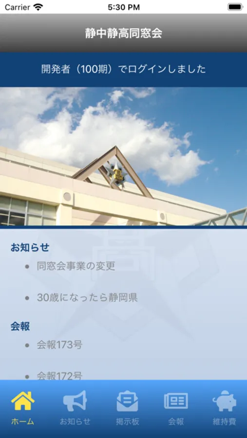 静中静高同窓会はこれまでも誌面による会報の発行や各種会合を開いてきました。一方で昨今のインターネットやスマートフォンの普及に伴い、新たな情報発信とコミュニケーションのあり方についても議論を重ねて参りました。その結実としてこの度、スマートフォン向けに静中静高同窓会アプリケーション(以下、同窓会アプリ)を公開しました。