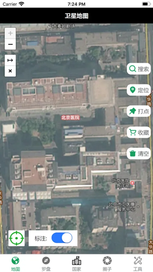 2、提供了地图标注、距离计算、面积计算、罗盘、方位图、离线地图、指南针等实用小工具。