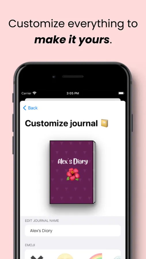 Change the name, color, pattern, basically everything about your journal and the journaling experience so you can feel completely comfortable when reflecting on your day or pouring out your soul.