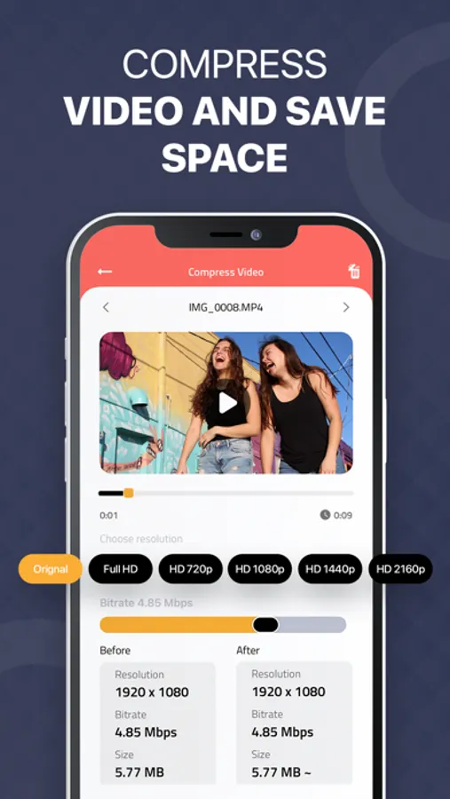 - Save space on your iPhone or iPad by reducing videos & photos file size.