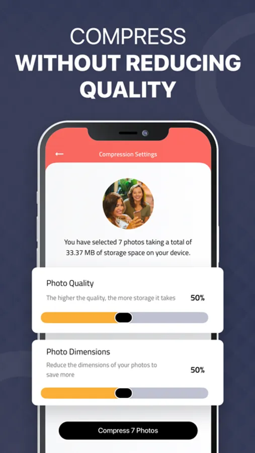 - Compress the Photos with options like Photo Quality and Photo Dimensions.