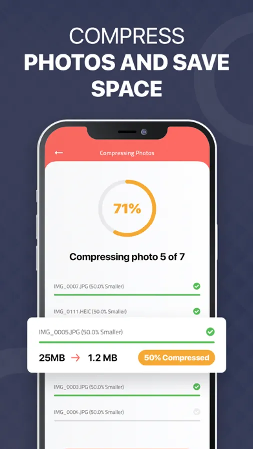 - Compress and optimize Photos & Videos to decrease sizes by 80% or more