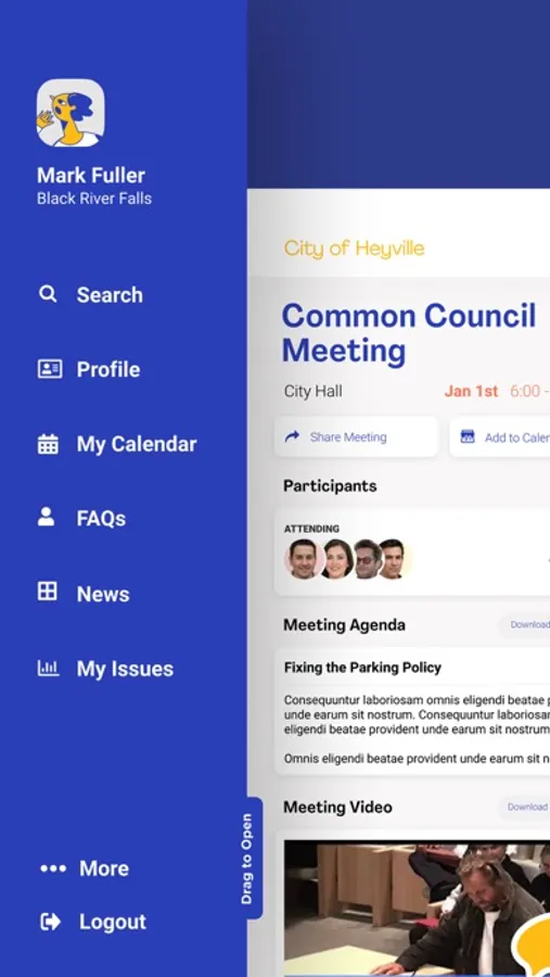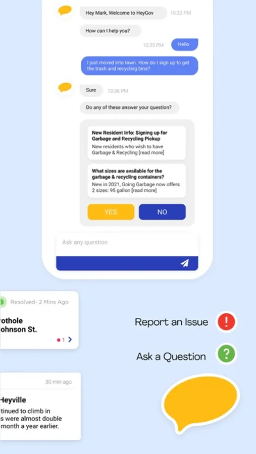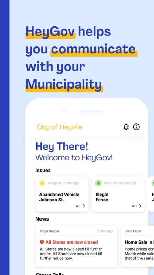 HeyGov is e-government management software built for local government. As a resident, you can do the following in the app, if your town, city or village is a subscriber of HeyGov:
