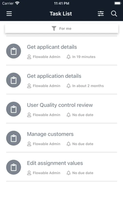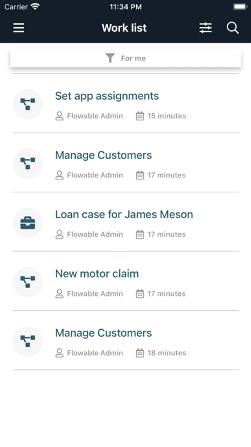 Now, with Flowable Work Mobile, you can easily manage your work straight from your mobile: processes, cases. All benefits of Flowable Work brought in a simple, easy to use mobile application. The Flowable Work Mobile lets you manage all your tasks, do the necessary checks and follow ups at any time. Seamless experience, reflecting exactly the same look and feel as on desktop, fully available also on Flowable Work Mobile.