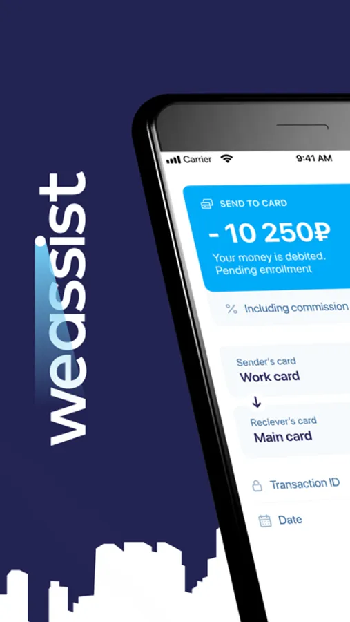 The Weassist application guarantees the security of online transactions. Money transfers are made in accordance with international standards developed by VISA and Mastercard systems for personal data protection.