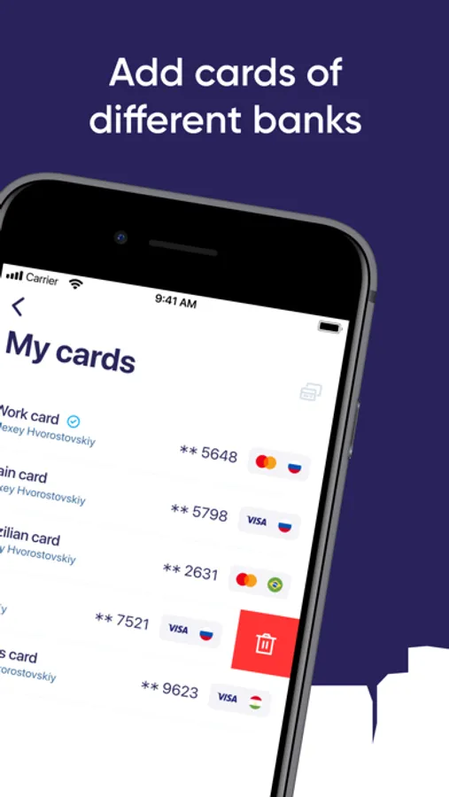 Account Management — Add cards of any bank you often use and make instant transfers around the world in just a couple of clicks.
