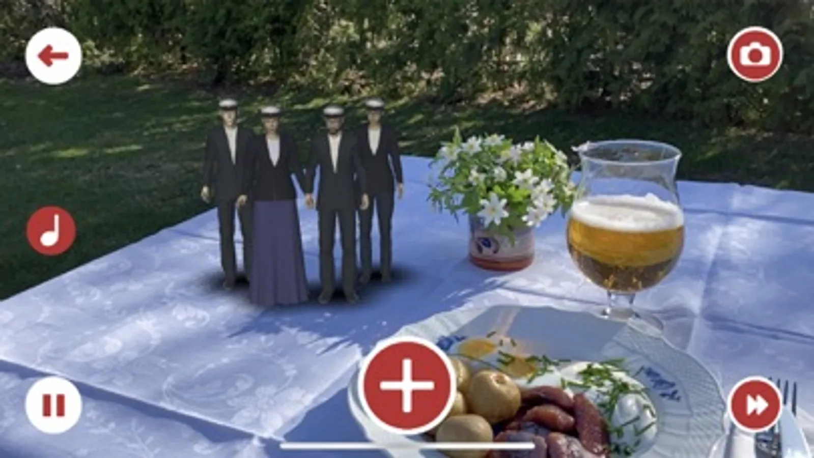 Sista April-appen ger dig din egna virtuella kör som sjunger vårsånger för dig där du är. Välj bland fyra sånger och vilka stämmor som skall sjunga. Placera kören på sillbordet eller i trädgården. Ställ dig bredvid och sjung med.
