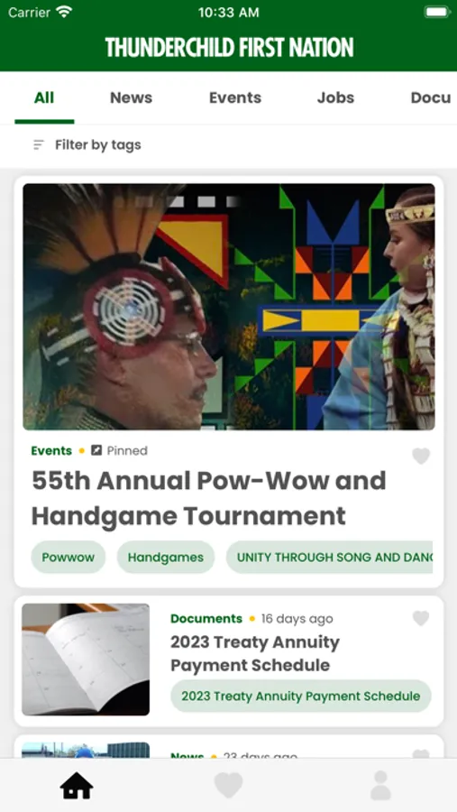 - View personalized feed supplied by the Band Office in a chronological order or by category: