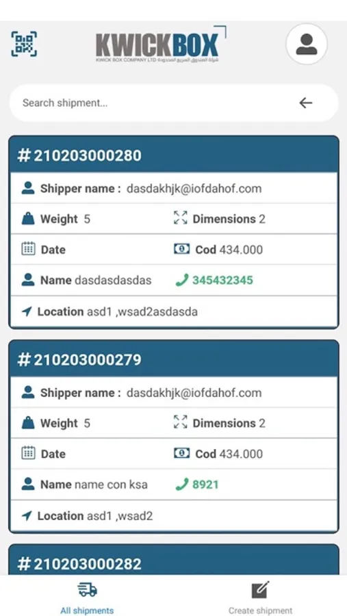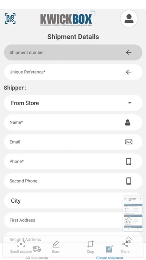 KwickBox Shipper an app for KwickBox customers to create shipment orders to be shipped by KwickBox