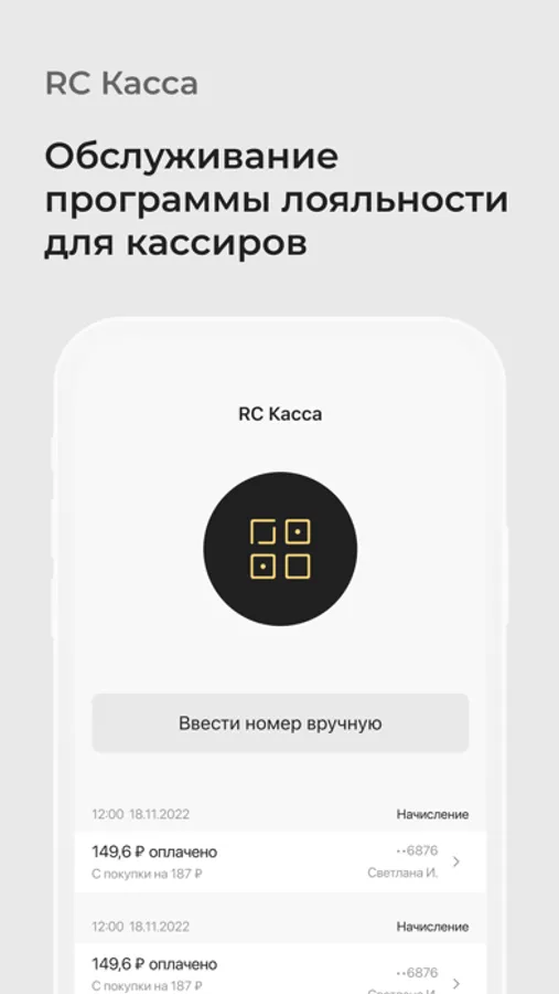 "Мы разработали приложение для комфортной работы с wallet-картами ваших клиентов. Теперь вы можете оцифровать карту клиента или присоединить новых клиентов в программу лояльности, просто зайдя в приложение. Работайте с цифровыми картами клиентов, выдавайте новые, отслеживайте историю операций сотрудников и начисляйте кэшбек в одном приложении. Для продвижения программы лояльности среди сотрудников существуют специальные бонусные очки.