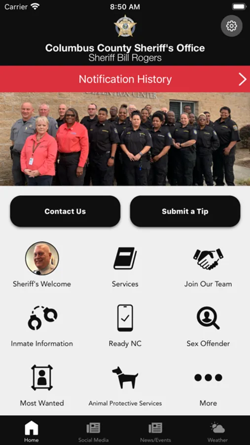 The Columbus County Sheriff's Office mobile application is an interactive app which will help establish communication with the citizens of Columbus County. Information will include, but not be limited to contact information, news, emergency alerts, local weather, inmate search, sex offenders, and Most Wanted. Citizens may submit a crime tip directly through the app, as well as see and share social media posts.