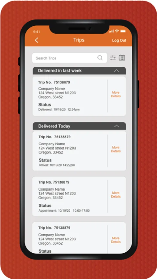 As a customer or a member of the Ashley Furniture team, the Track and Trace app gives you the ability to view a trip’s delivery status. You can search for a trip from one of the default trip status categories, by selecting a specific date or by simply typing in the trip number if known.