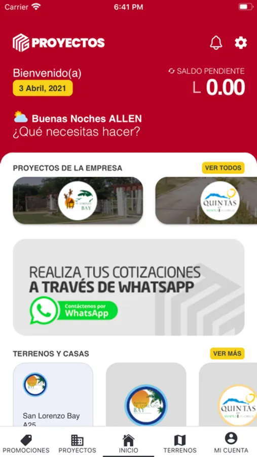 Está aplicación se pone a disposición para que los clientes con terrenos en los diferentes proyectos residenciales puedan realizar las siguientes consultas: