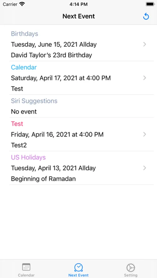 It is an app that displays the next event for each calendar set in the Calendar app.