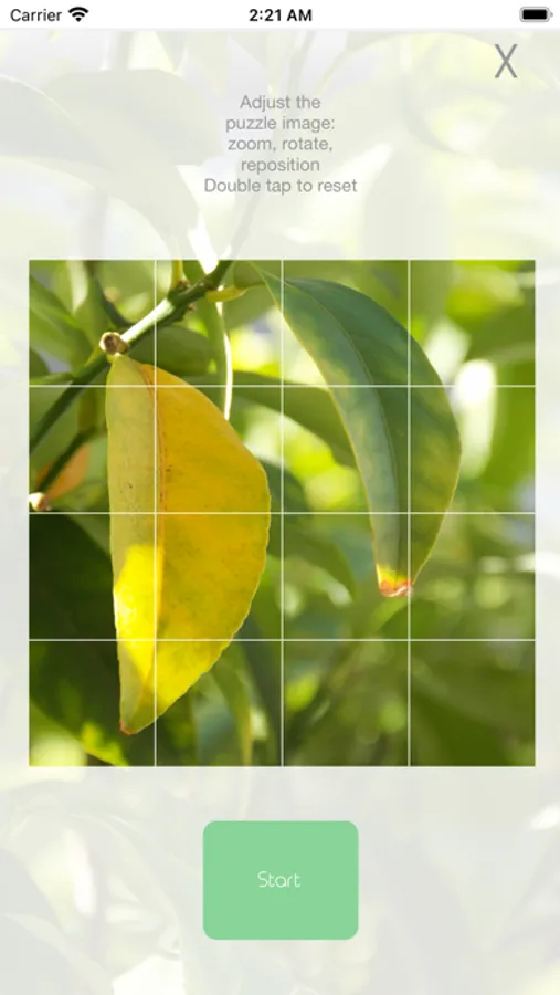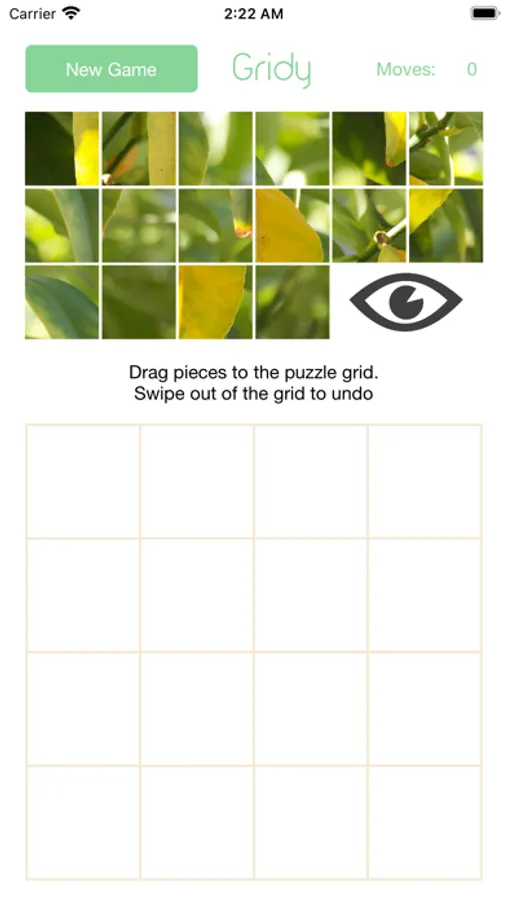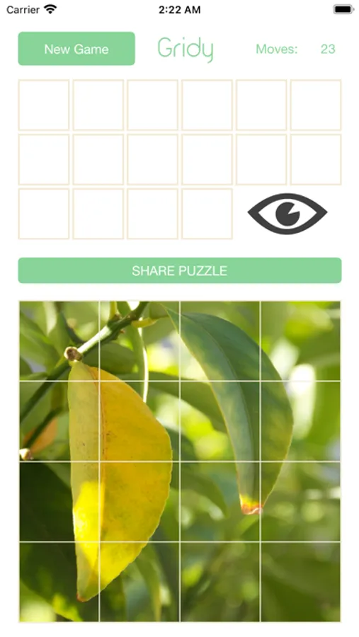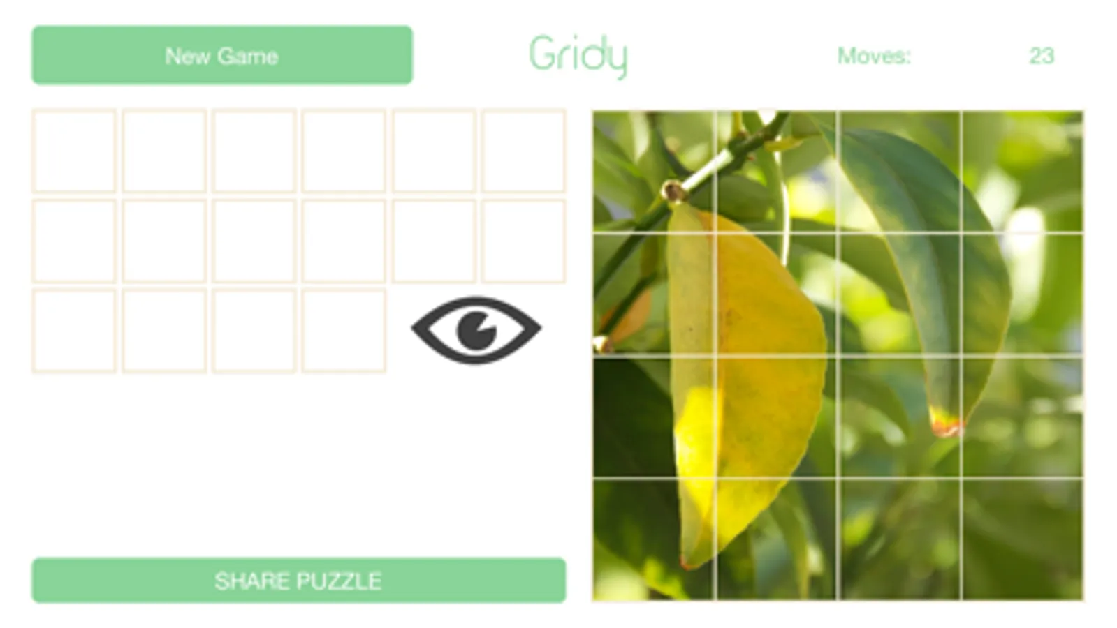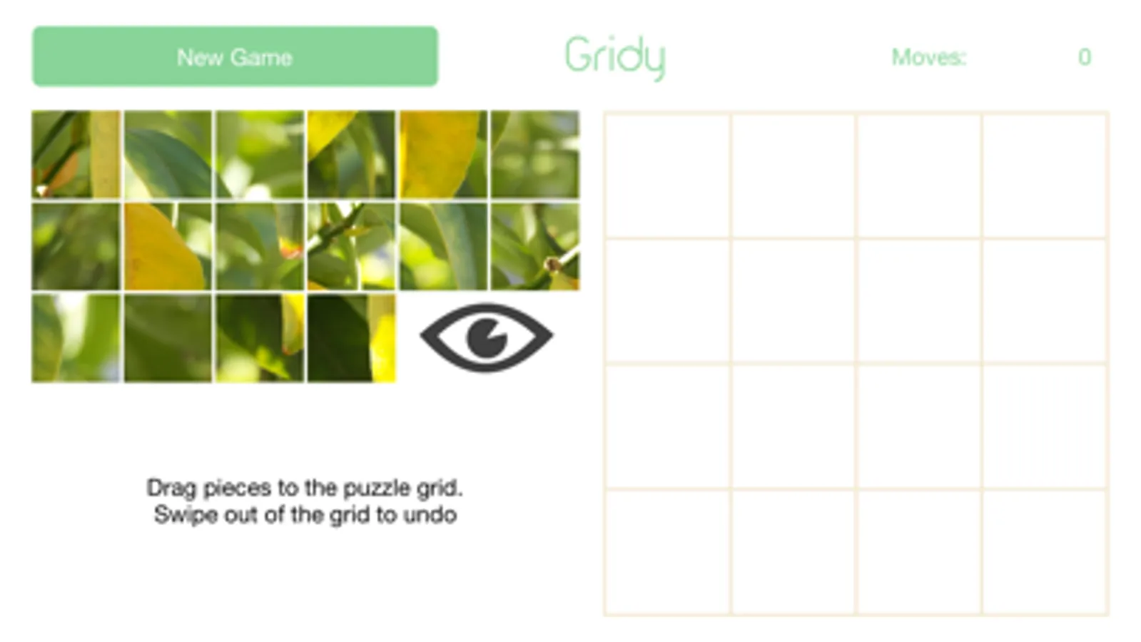 This is a simple puzzle game of 16 pieces. The user can create a puzzle using a picture from her/his camera or photo library. The user can share the completed puzzle picture at the end (email, social media, etc). The application counts the number of moves used to solve the puzzle, 16 moves being a perfect score. There is a "hint" feature to help the user solve the puzzle.