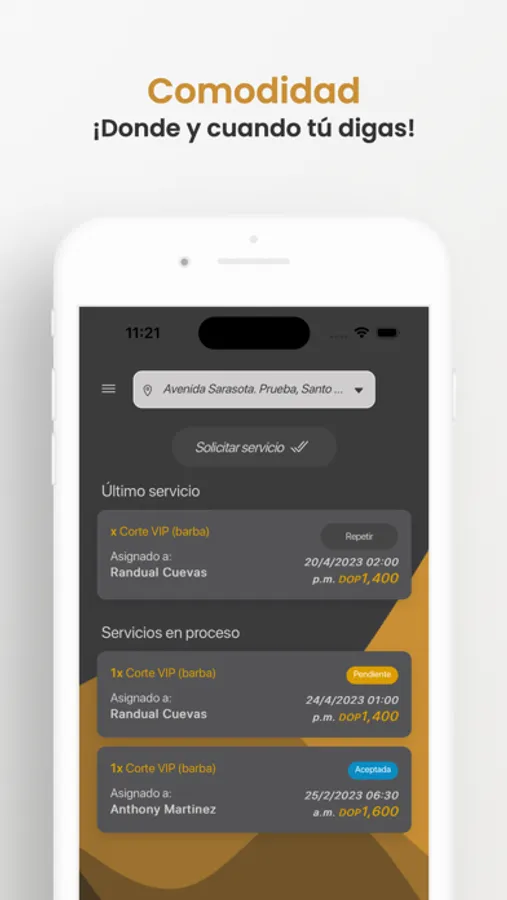 - Solicitar un barbero desde la comodidad donde te encuentres