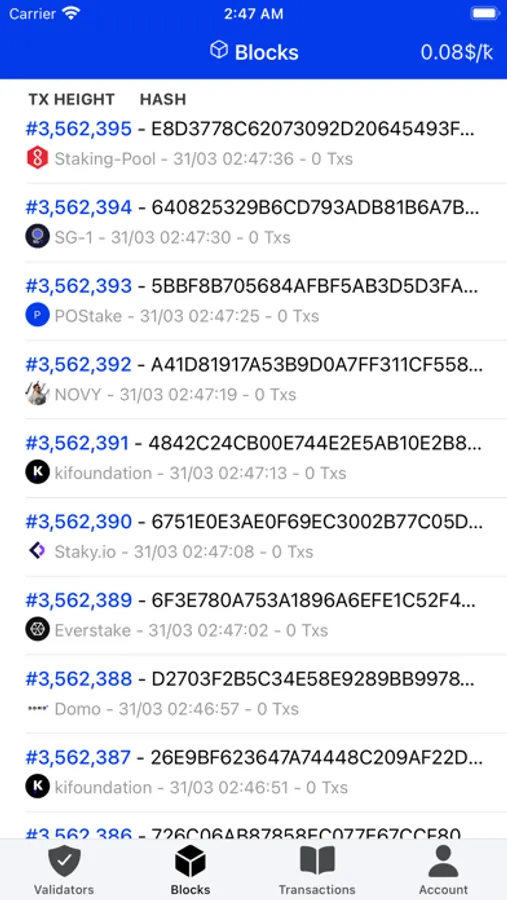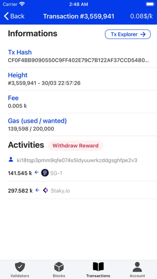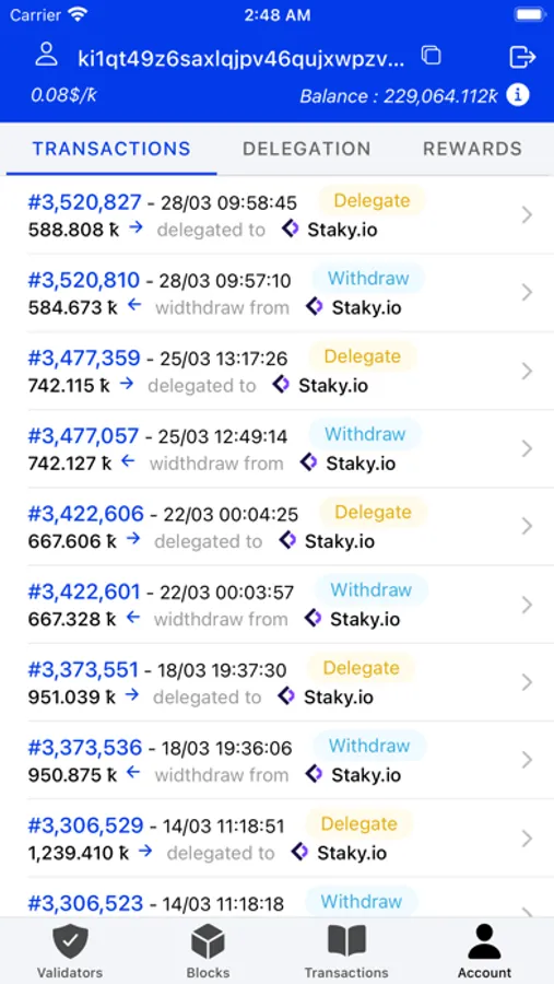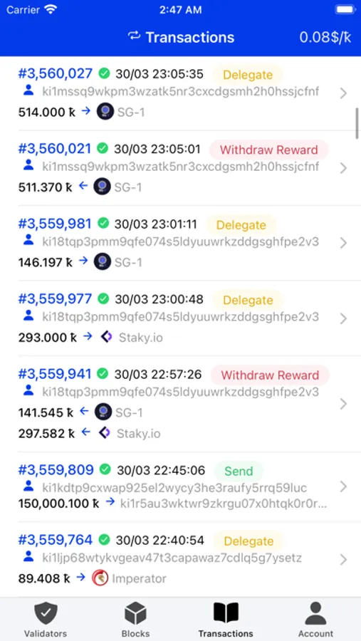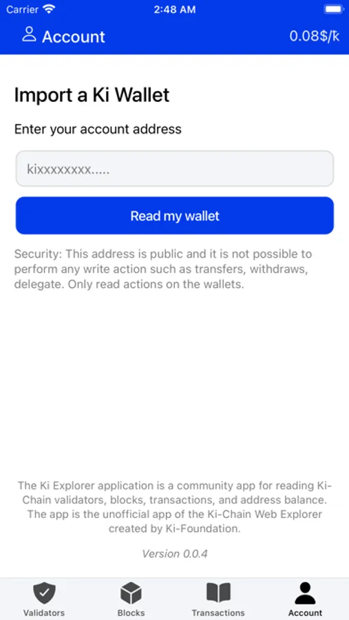 The Ki Explorer application is a community app for reading Ki-Chain validators, blocks, transactions, and address balance. The app is the unofficial app of the Ki-Chain Web Explorer created by Ki-Foundation.