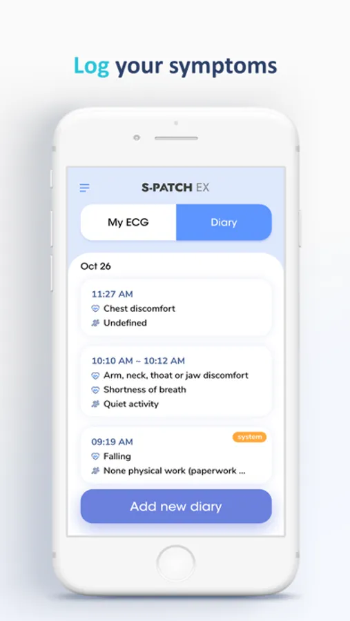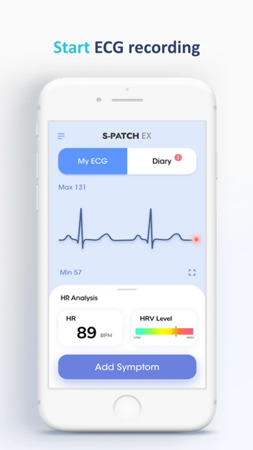 The App must connect to an external hardware device called the S-Patch in order to get activated and start collecting continuous ECG signals. The S-Patch is a medical grade ECG monitoring solution intended for use in the diagnosis of arrhythmia for patients with suspected cardiac symptoms such as, but not limited to: abnormal heartbeat, lightheadedness, dizziness, chest pain, sweating, pre-syncope, syncope, fatigue, or anxiety.