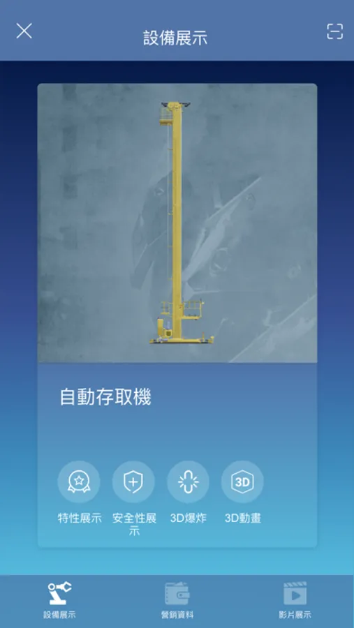FHI AR為台朔重工自動倉儲系統自動存取機AR擴增實境App,提供自動存取機在3D場景中演示設備特性、安全性、爆炸拆分、三維動畫等。內建型錄及影片介紹,提供使用者對台朔重工自動化系統進一步認識。