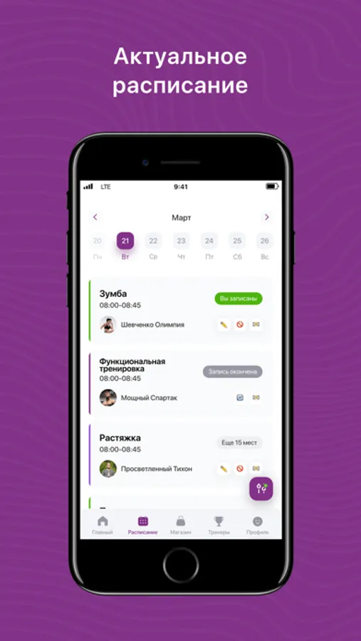 - Посмотреть актуальное расписание тренировок