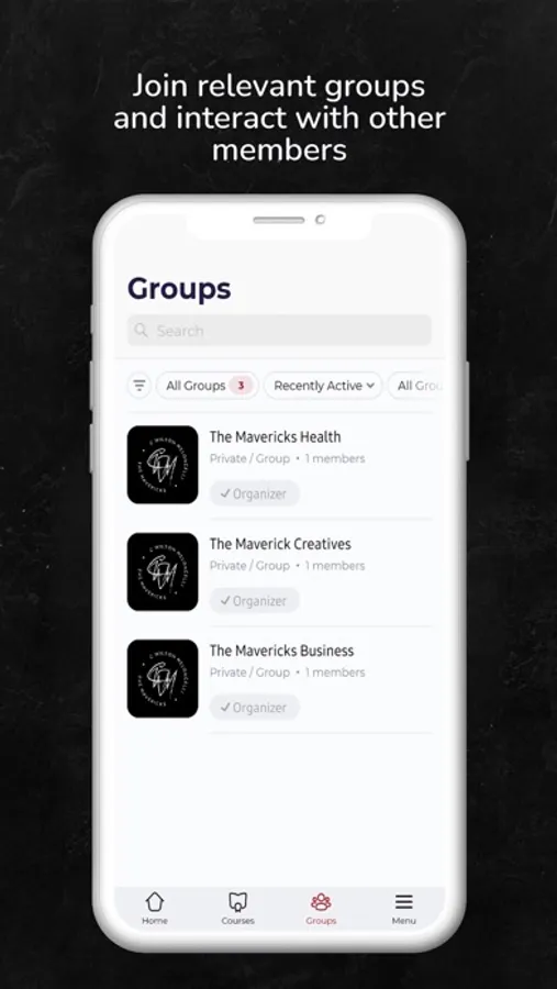 Groups are set up to allow participants to connect with each other who share similar fields. From the likes of entrepreneurs, artists, authors, musicians, athletes etc. all connect via the groups function inside the Mavericks App.