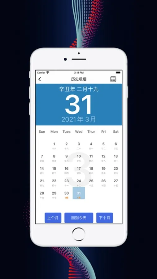 聚家戒烟助手,帮你统计每天的抽烟状况,并以日历的形式展示,快速了解历史抽烟情况。