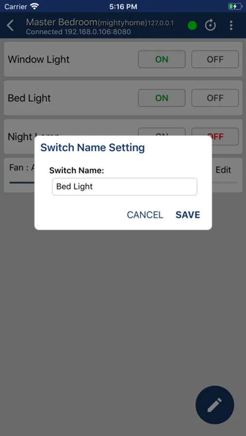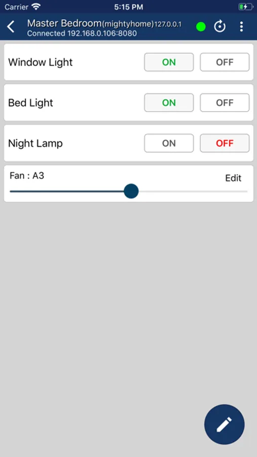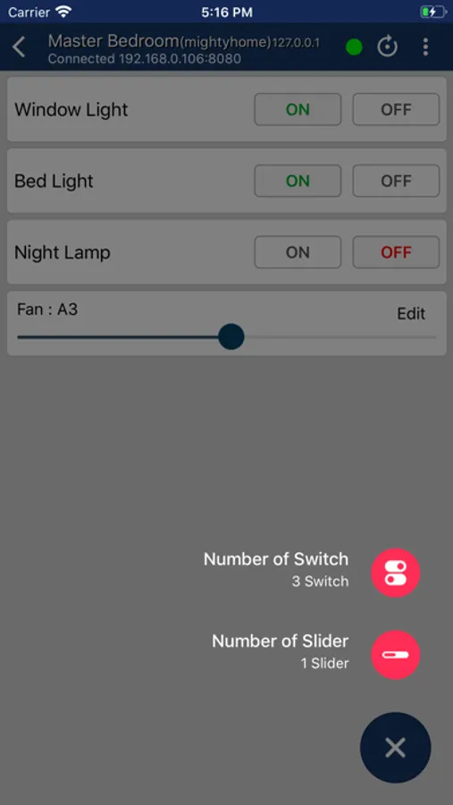 WiFi Home Automation App is used to control your relays connected to WiFi module like ESP8266, ESP32, NodeMcu, Wemos or similar using TCP/IP Protocol.