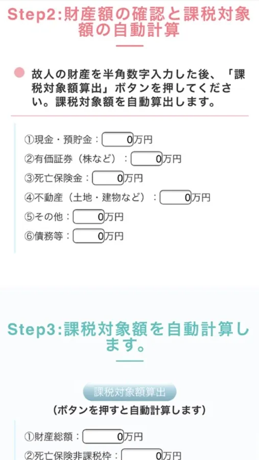 相続税がかかるとしたら、いくらぐらい税金がかかるのだろうか?…という疑問に答えるアプリです。