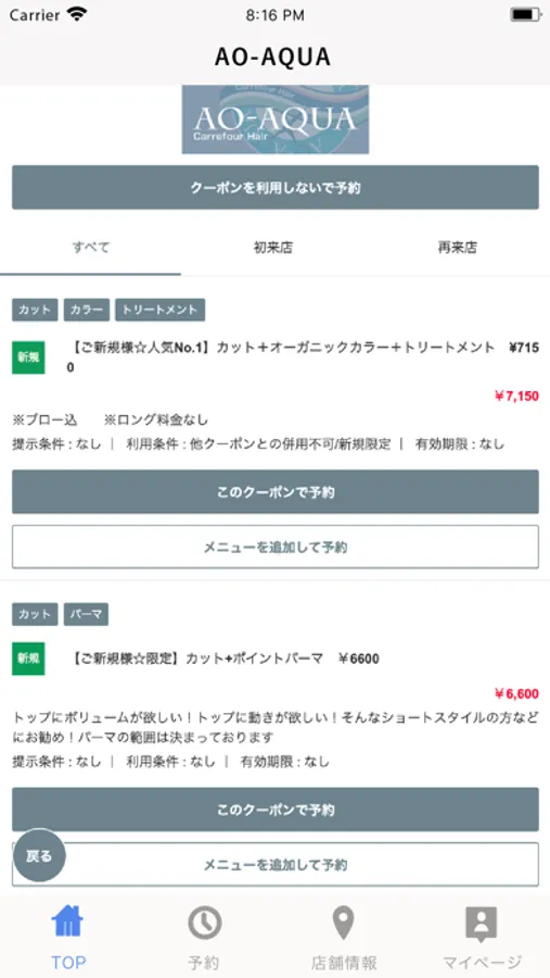 お得なクーポンが配信されます。ネット予約時にクーポン利用での予約も可能なので来店時もスムーズに施術頂けます。