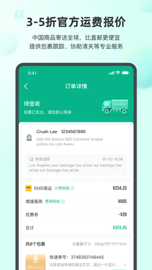 3-5折官方运费报价,中国商品寄送全球,比直邮更便宜,Herobuy客服贴心提供包裹跟踪、协助清关等更专业服务。