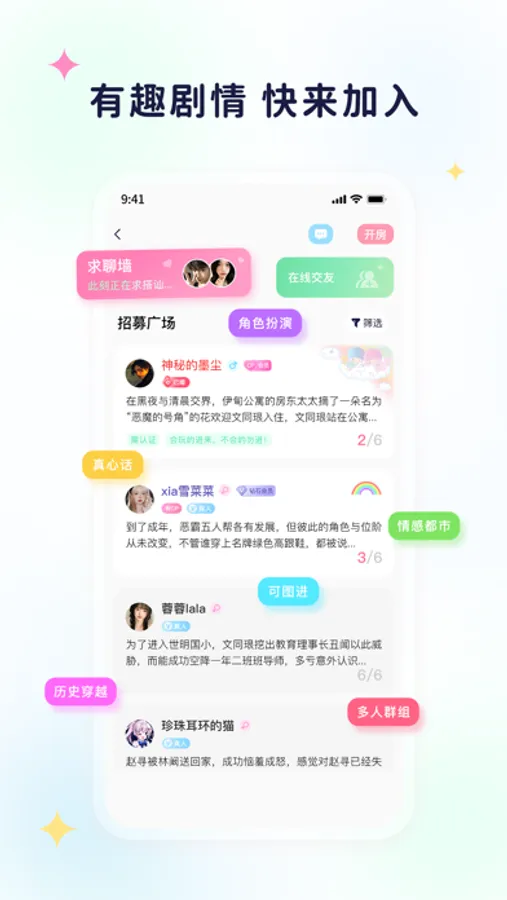 剧情控,多人场景互动、角色扮演约会社交平台。开放剧情,让你身临其境体验不一样的感觉。可放心大胆的进行交友。