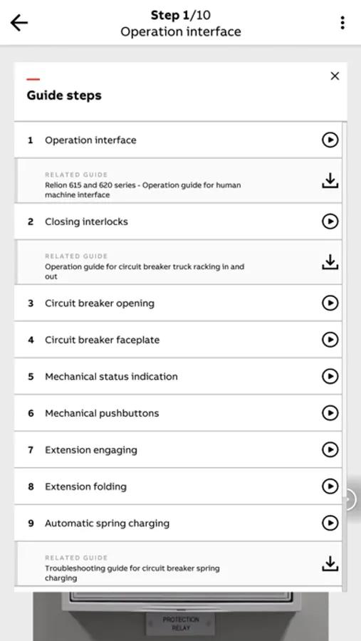 This application includes interactive operation and troubleshooting guides for ABB electrification products. The guides can be accessed and used when you need support in front of the equipment.