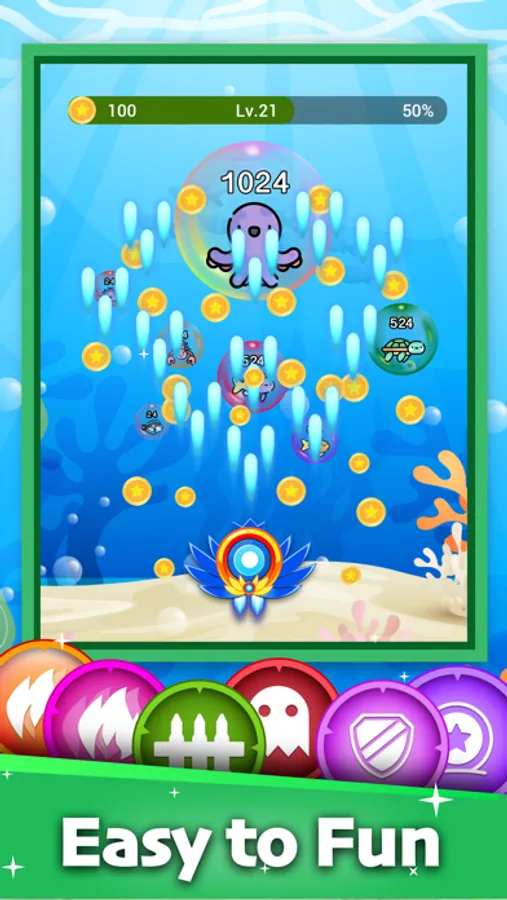 - Simple controls with tap and hold that doesn’t need a tutorial, so dive right in and shoot'em up!