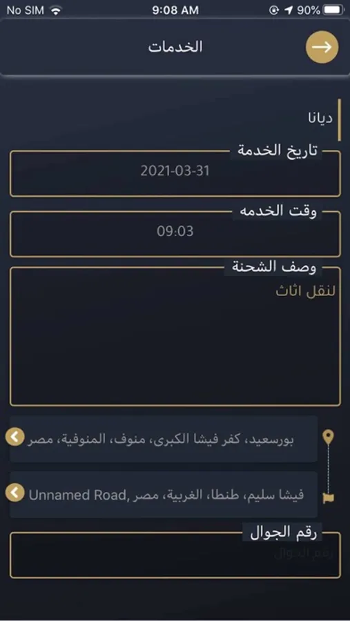 تطبيق لنقل العربات والمعدات