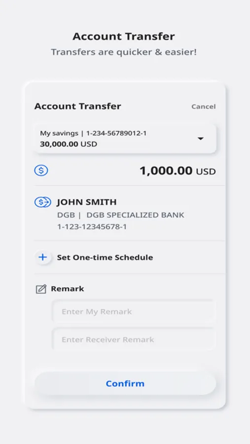 2- Perform instant or scheduled fund transfer between your DGB Bank accounts
