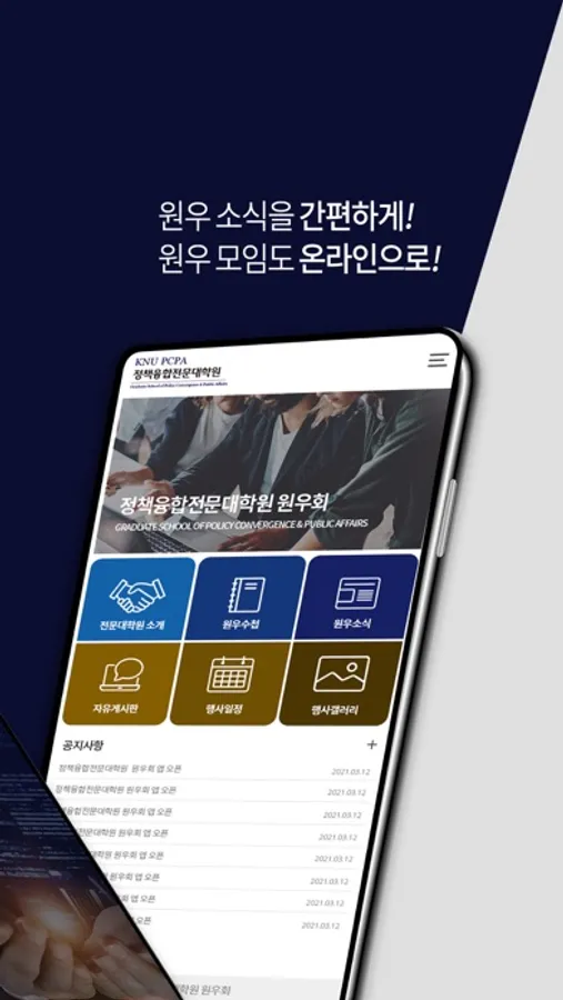 원우분들의 연락처, 원우소식, 학사일정 공유 등의 기능을 제공하고,
