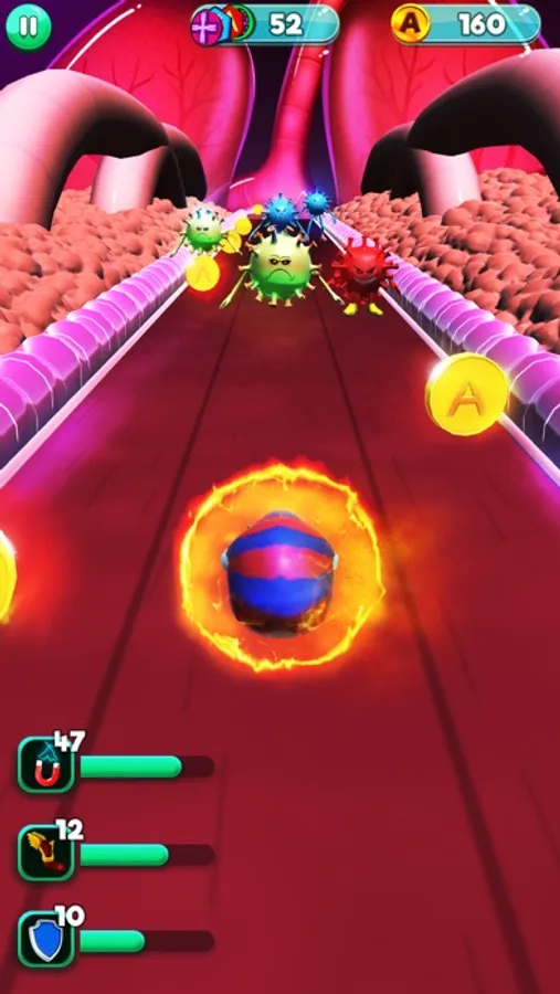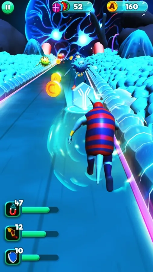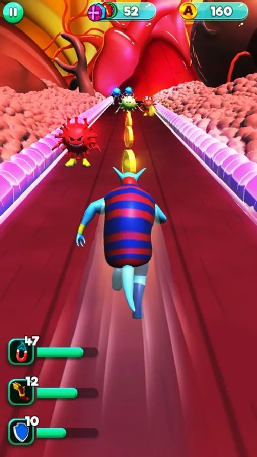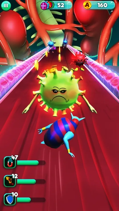 - RUNNING ACTION - Help Ray run through the human body and collect vitamins to help the human while avoiding the evil aliens along the way