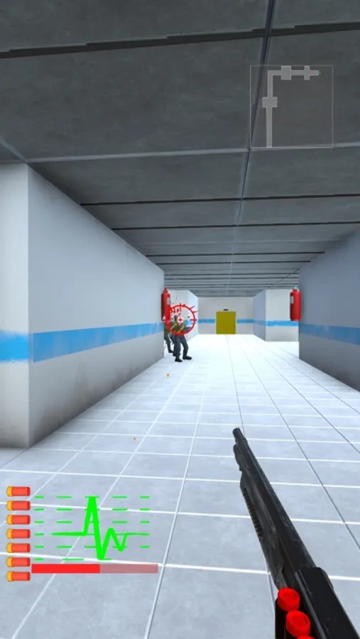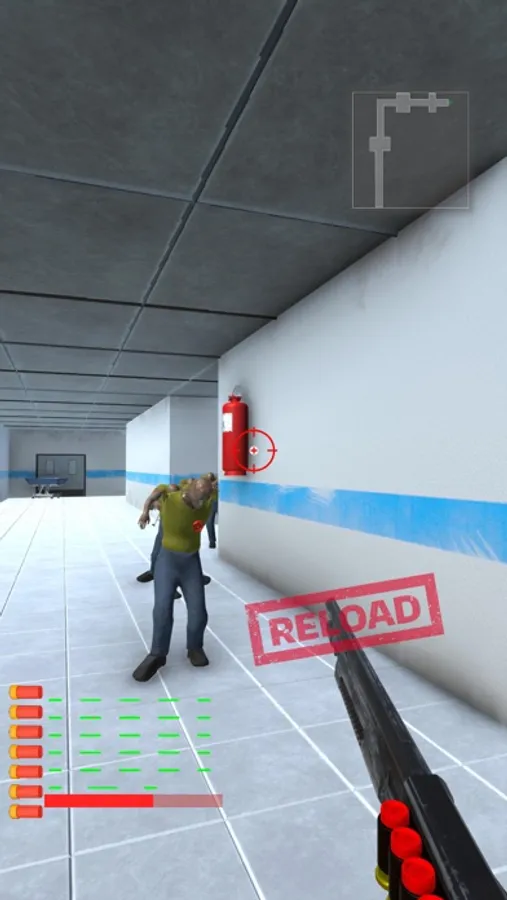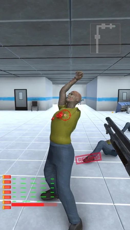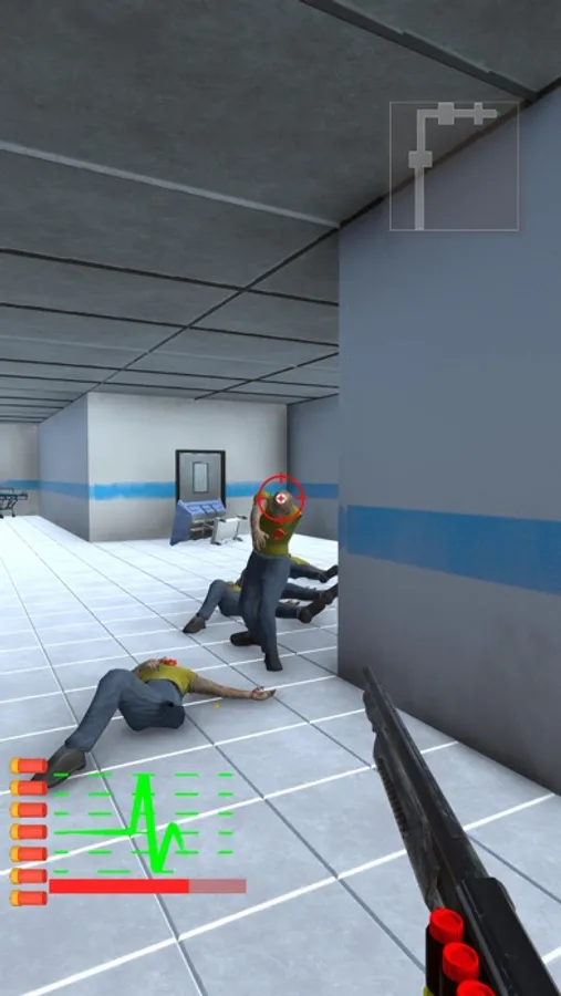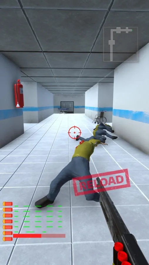 The zombies are after you! You can clear the hospital from zombies by shooting them all with the joystick.