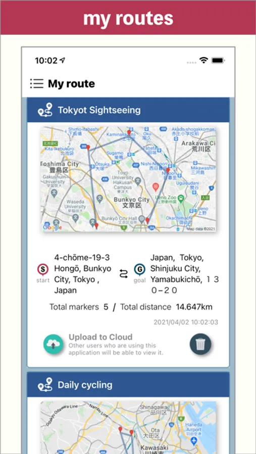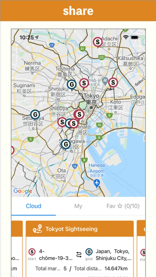 Routes can be shared. When you share a route, other users who are using this app can see the route you have created. Of course, you can also get a variety of routes created by other users.