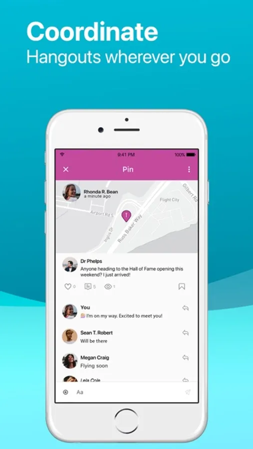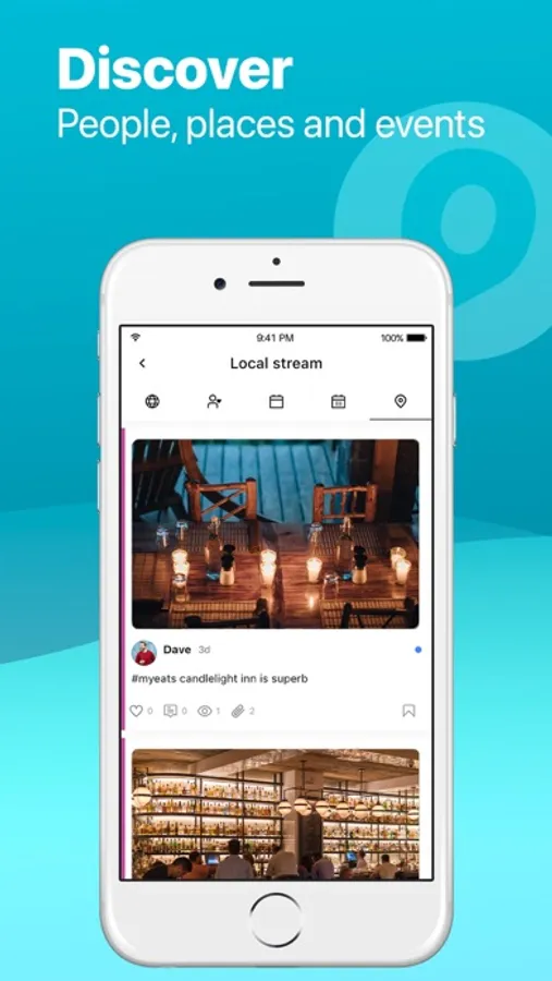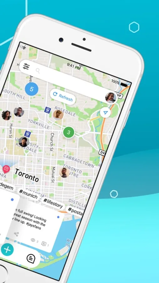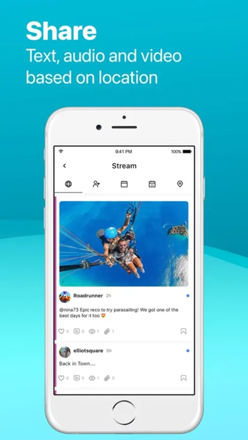 • Post messages, images, and videos tied to your location or anywhere around the world