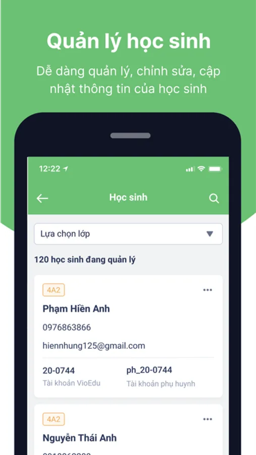 + Quản lý danh sách học sinh: tạo lập, chỉnh sửa, cập nhật thông tin học sinh