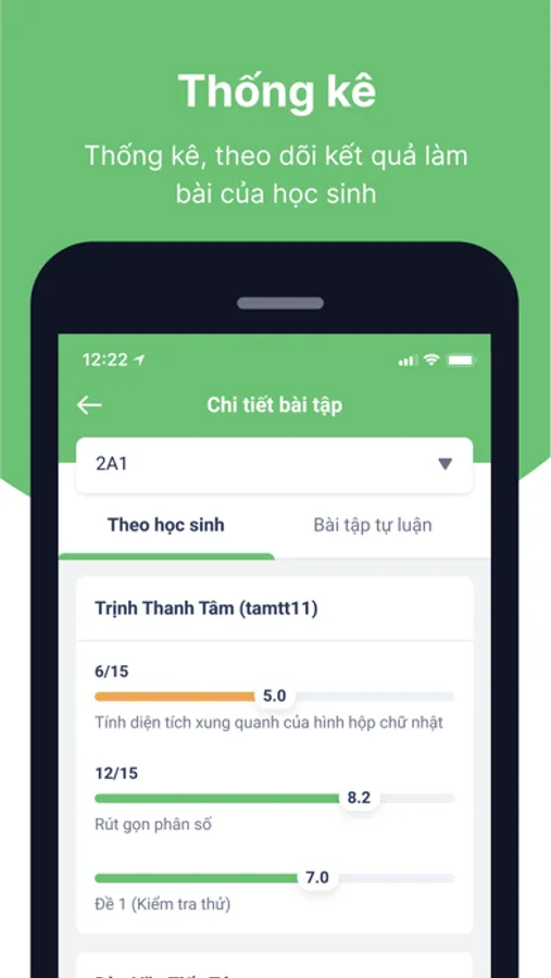 + Thống kê thông minh: hiển thị trực quan điểm số từng kỹ năng, từng học sinh, điểm trung bình lớp và môn học, hỗ trợ xác định điểm mạnh, điểm yếu của học sinh