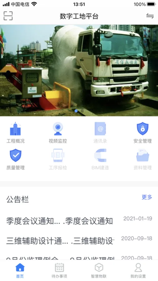 提供工程概况、视屏监控、通讯录、安全管理、质量管理、工序报检、BIM建造、资源管理等功能支持