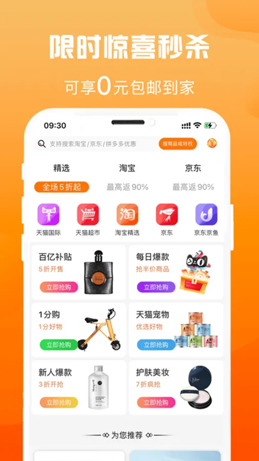 5、每日一元秒杀,更有新人专属0元购福利商品。只等你来!