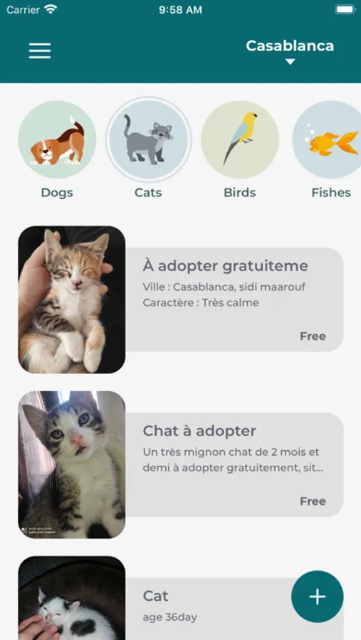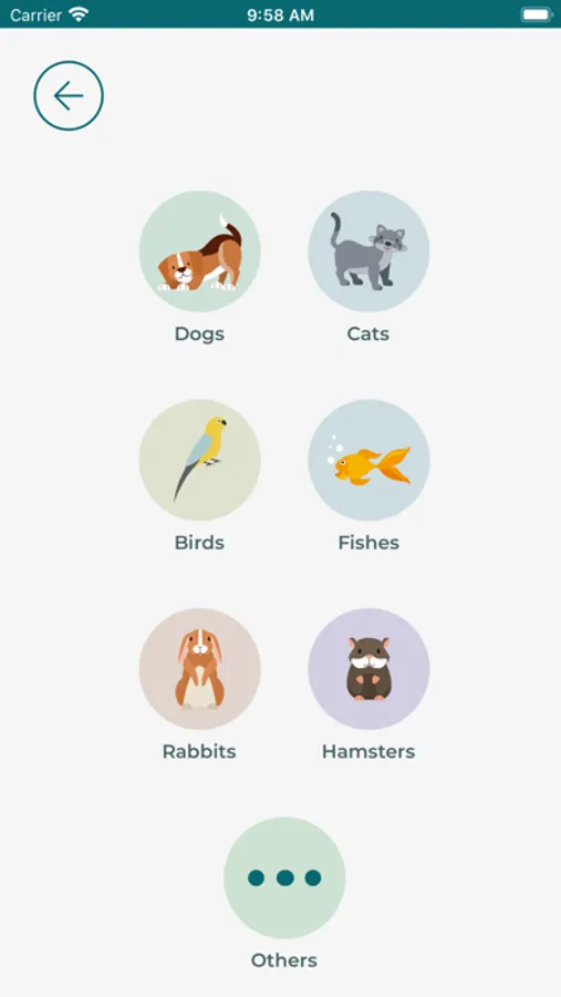 • You can find many pet types for adoption: Dogs, Cats, Birds, Hamsters, Fishes, Rabbits or you can choose "others" for the pets that are not on the list.