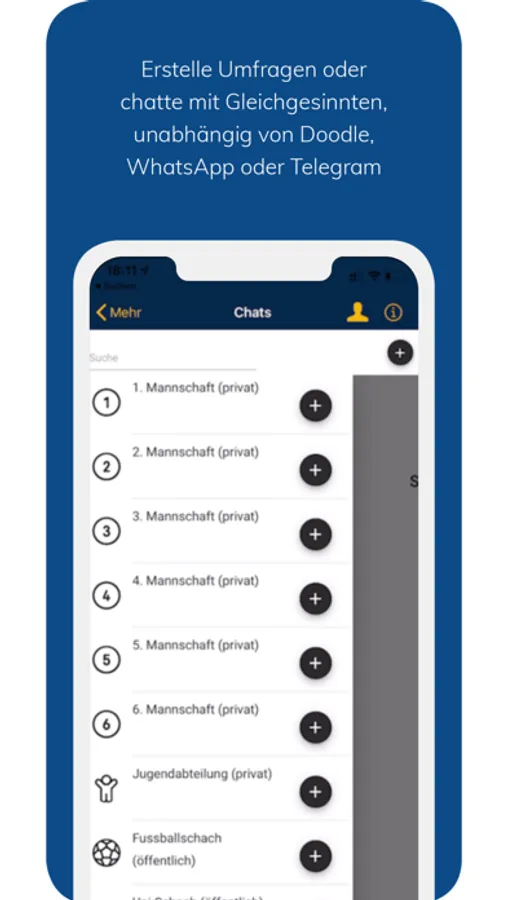 - Chat-Möglichkeit zur Abstimmung zwischen den Mannschaften und Gruppen
