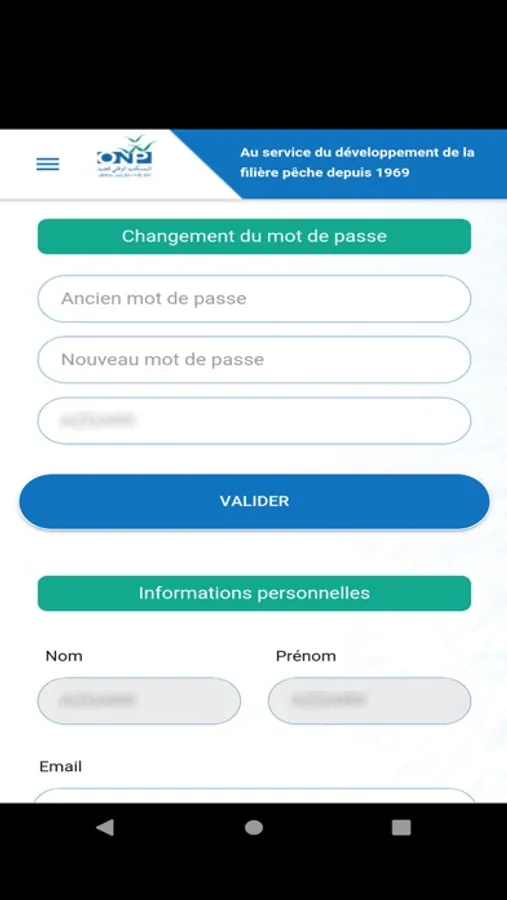 Application mobile de l’Office National des Pêches "ONP MOBILE".